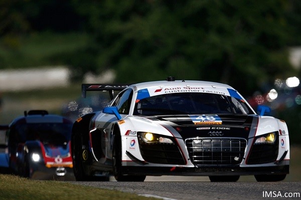 im #48 Paul Miller Audi R8 mit Bremsproblemen in Turn 1 von der