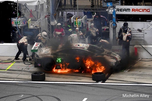 In Runde 31 kommt es in der Box zu einem größeren Feuer als der #27